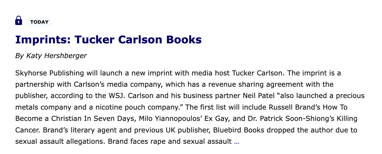 Let's just take a moment to appreciate this sentence: "Carlson and his business partner Neil Patel “'also launched a precious metals company and a nicotine pouch company.'”