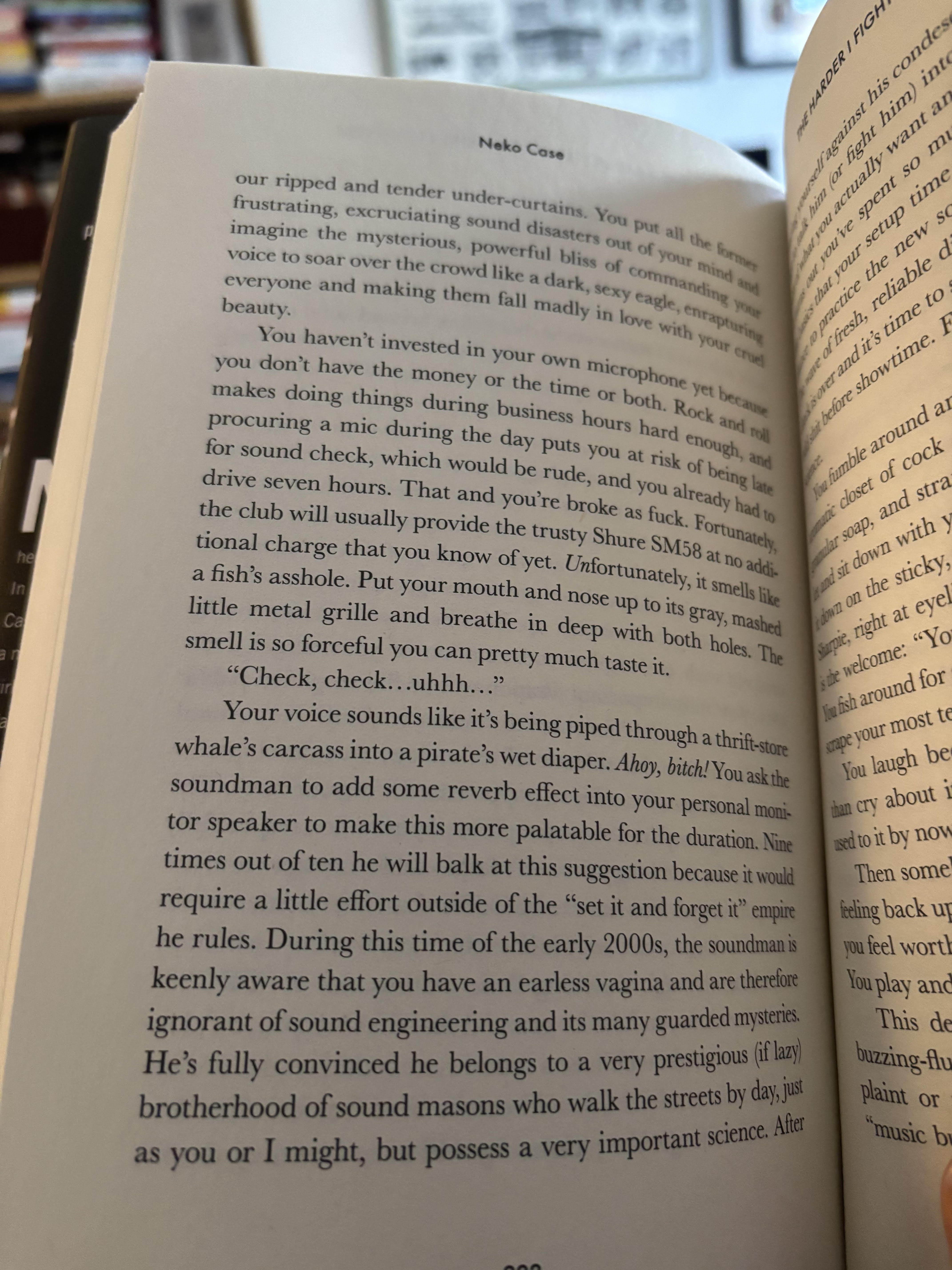 If you’re On Here you might already know that is an excellent writer of prose. Her newsletter details her life as a touring musician and a sharp observer of the natural world, and she is. generally just a delight to read. Her point of view makes her memoir come alive with a dazzling array of perfect descriptions — of the animals she’s loved, of the emptiness of her childhood homes as the daughter of very young and neglectful parents, of asshole youth pastors who preach that all rock music is bad, of the kinds of punk bands she went to see as a kid growing up in the Pacific Northwest. Her vivid storytelling is filled with wonder and wit, even as her well-earned anger seeps through so many pages.