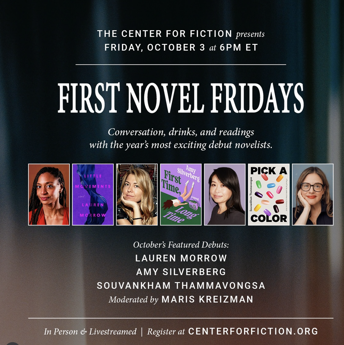 On Friday night I'll be moderating First Novel Friday at the Center for Fiction. I'm so excited about this program, in which the community is invited to come hang out with a few first time novelists and listen to them speak about their work.
