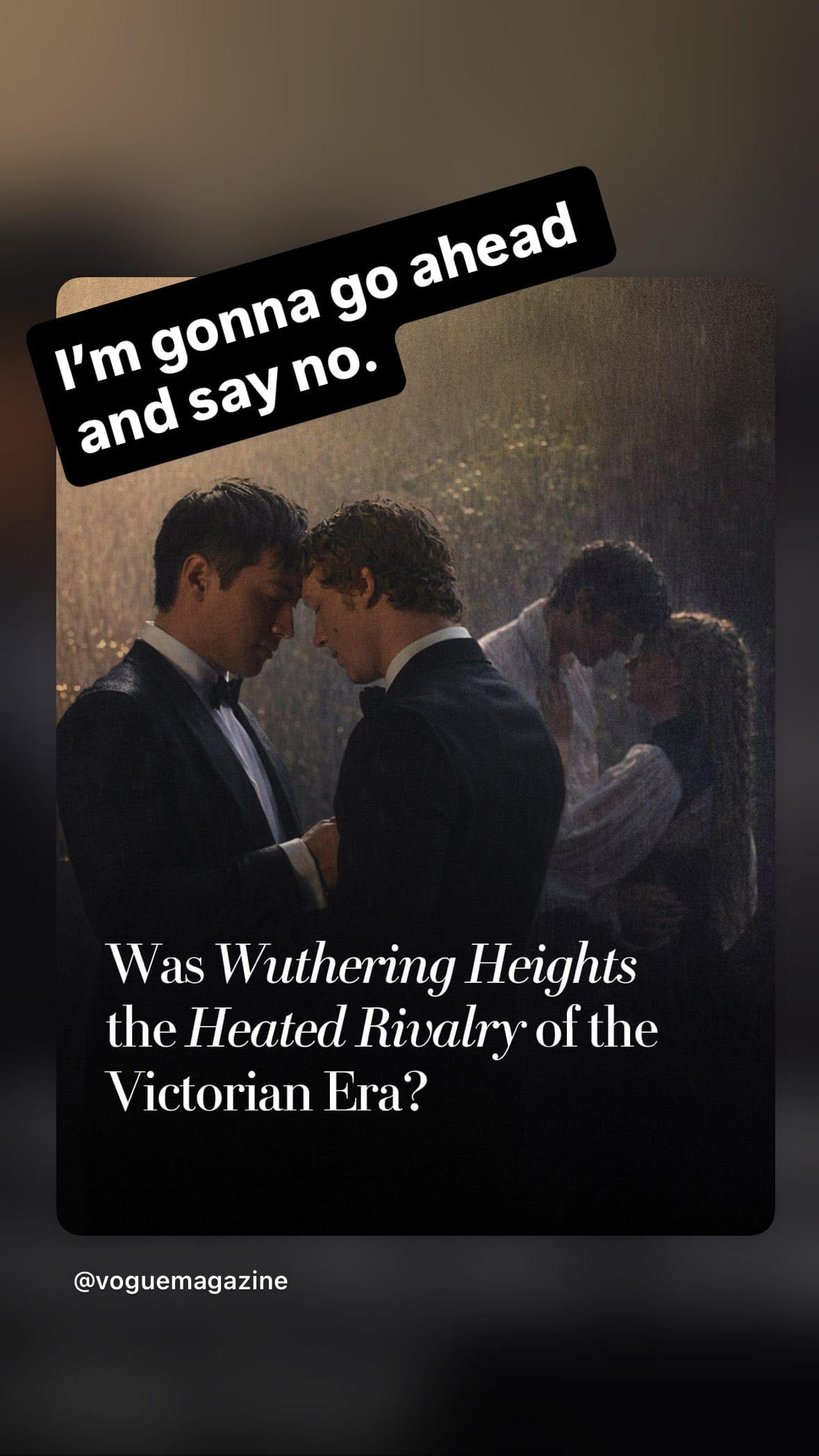Two weeks ago I wrote about Heated Rivalry for my column about Lit Hub about my fear that every other book would be compared to it. I was really not expecting Wuthering Heights to be one of them.
